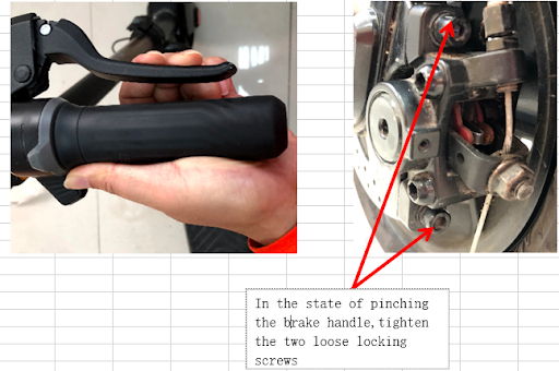 1. Draai de twee borgschroeven in de afbeelding los, ongeveer 3-5 slagen, om ervoor te zorgen dat de remklauw van de schijfrem los zit en niet loskomt!